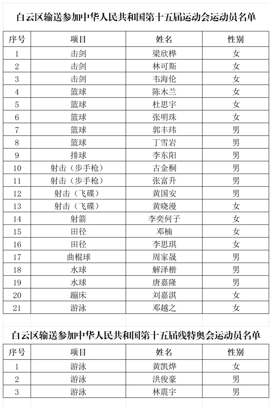 据统计,白云区共24名运动员参加十五运击剑、篮球等11个项目和残特奥会游泳项目,参赛规模创历史新高。
