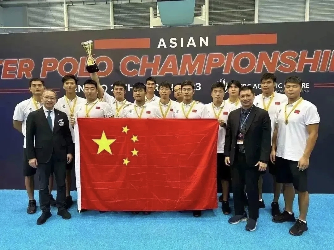 解泽楷(右八)出战2023年亚洲水球锦标赛,助力中国队时隔11年再次登上亚锦赛冠军宝座