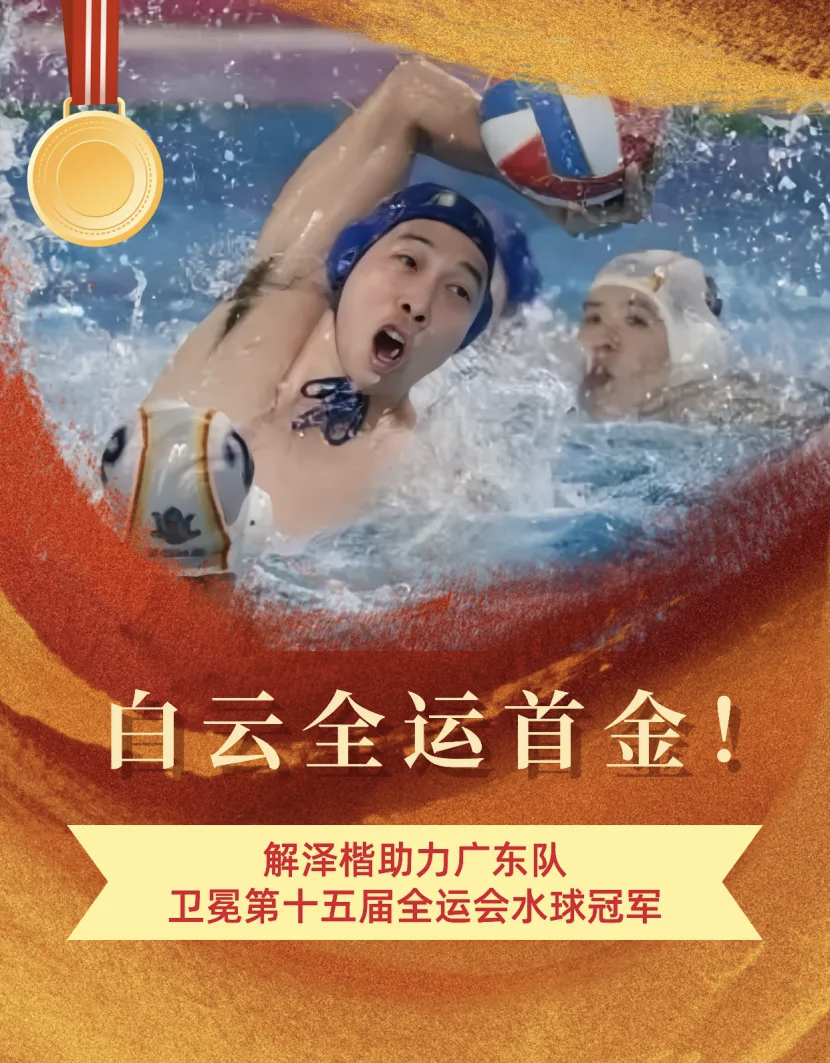 10月27日晚,第十五届全运会男子水球决赛在广东奥体中心游泳跳水馆上演巅峰对决。白云区教育局下属白云区素质教育管理中心(区体校)培养输送的运动员解泽楷,作为上届冠军阵容主力,助力广东队以16:9力克上海队,成功卫冕!